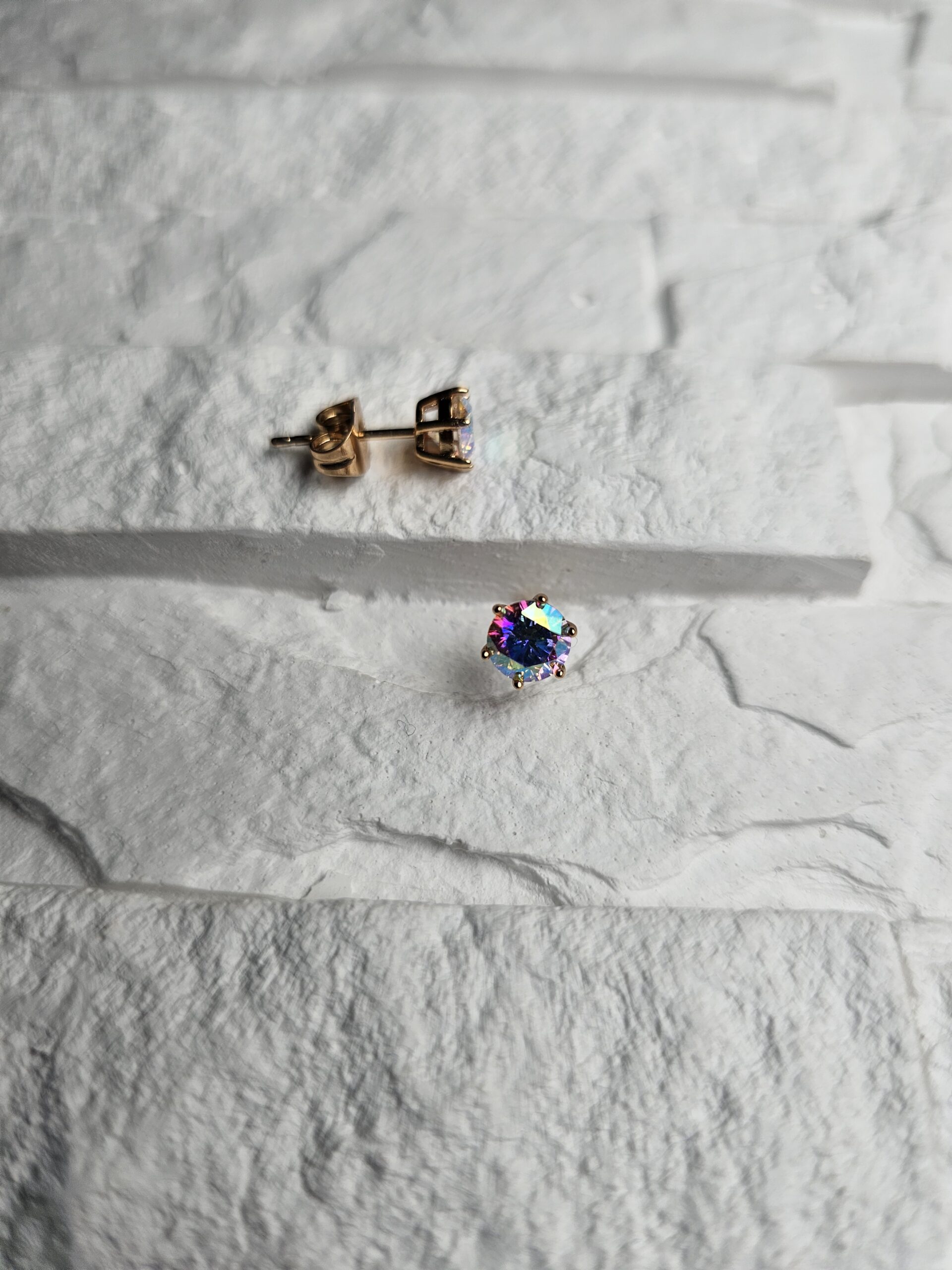 Spindintys auskarai su daugiaspalviais kristalais, kurie žaižaruoja visomis vaivorykštės spalvomis, primindami šiaurės pašvaistės grožį. Auksinis pagrindas subtiliai pabrėžia akmenų švytėjimą, suteikdamas auskarams prabangos ir išskirtinumo. Tobulas pasirinkimas norinčioms išsiskirti šviesa ir elegancija.