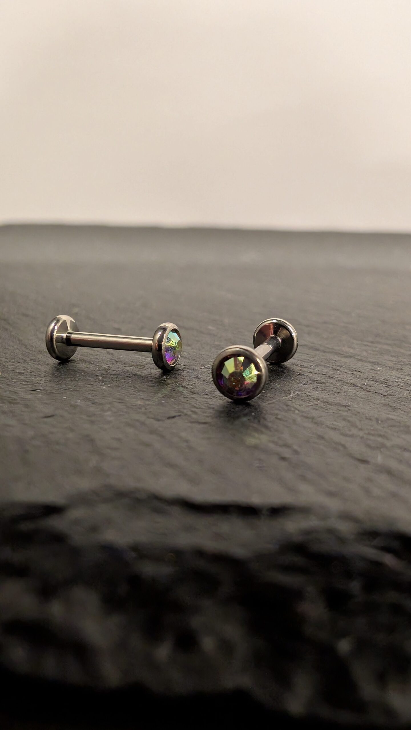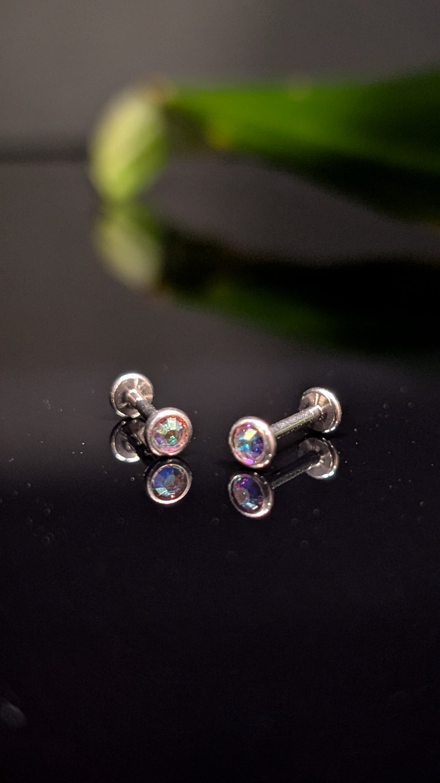 Subtilūs auskarai su spindinčiu kristalu, kuris žėri įvairiomis spalvomis priklausomai nuo šviesos kampo. Nerūdijančio plieno pagrindas užtikrina ilgaamžiškumą ir patogumą kasdien nešioti. Universalus pasirinkimas tiek kasdienai, tiek vakarui.