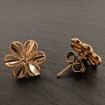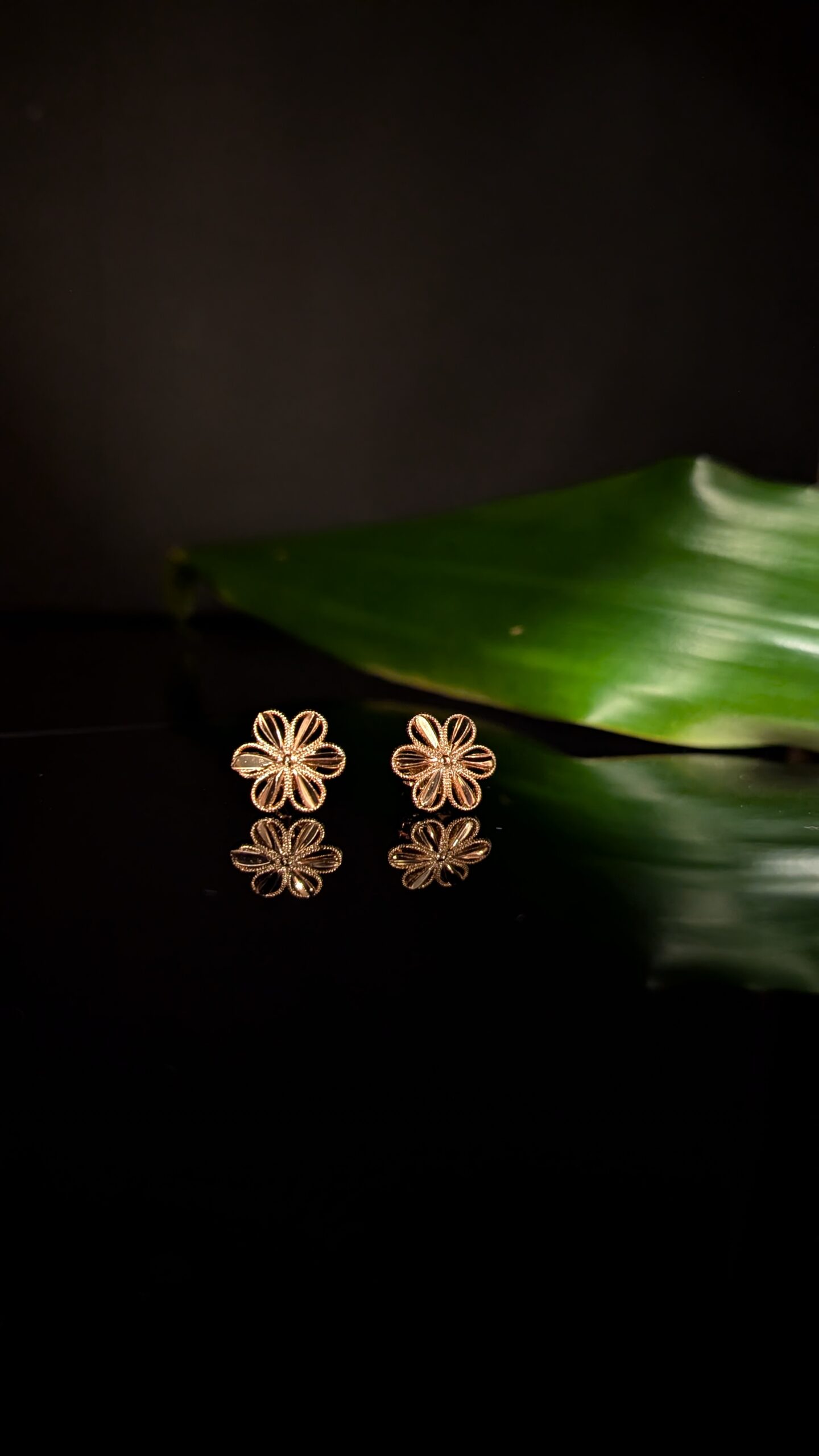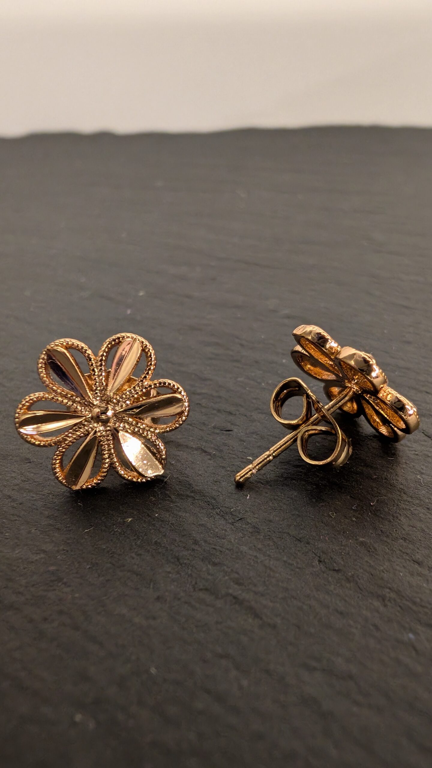 Išskirtinio dizaino auksinės spalvos auskarai, dekoruoti subtiliais žiedlapiais. Lengvas blizgesys ir elegantiška forma suteikia įvaizdžiui moteriško žavesio bei rafinuotumo. Puikus pasirinkimas tiek kasdienai, tiek ypatingoms progoms.