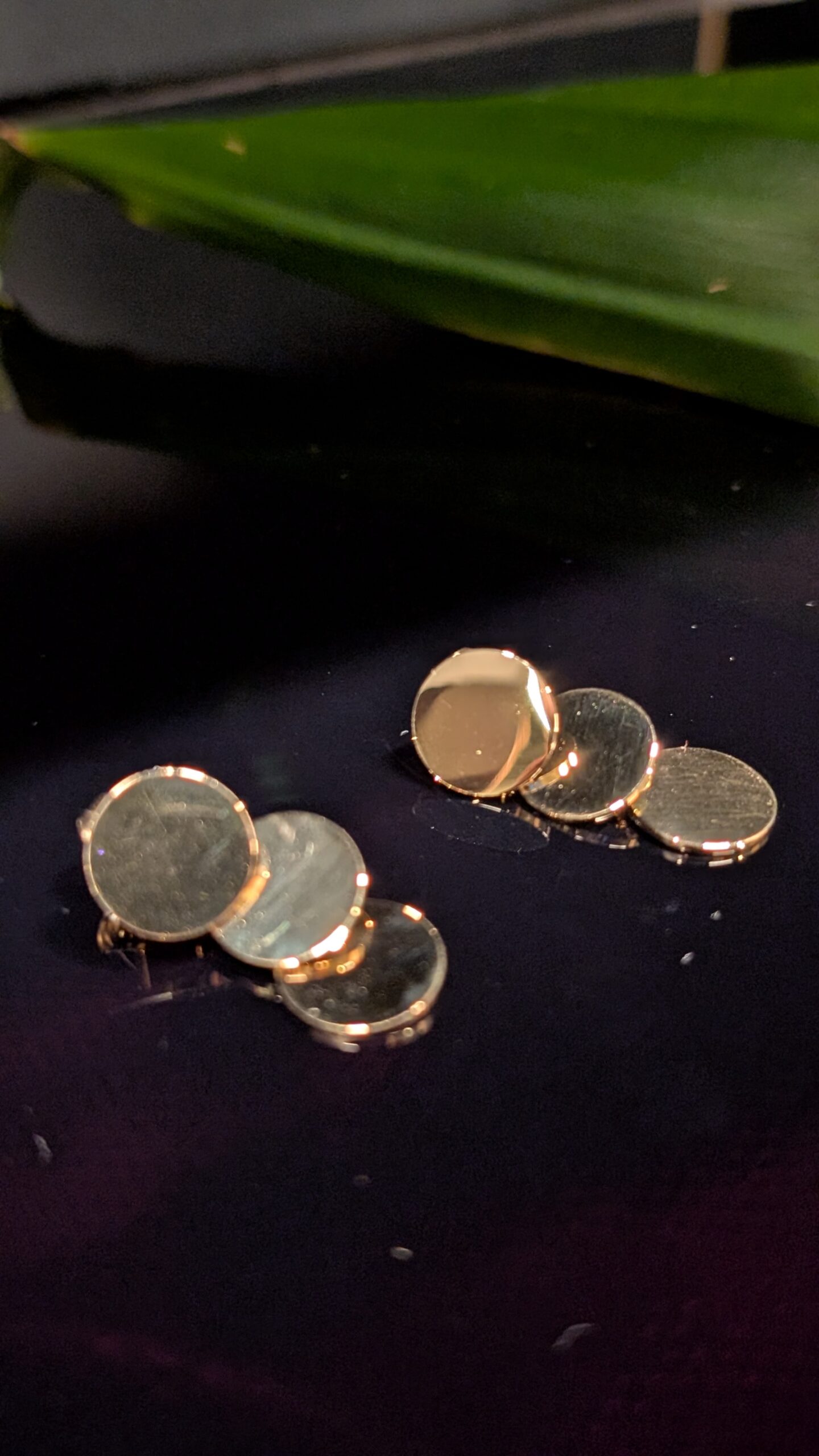 Modernūs auskarai iš trijų auksinės spalvos diskų, kurie elegantiškai krenta vienas po kito. Minimalistinis, bet kartu prabangus dizainas suteikia išraiškingumo ir lengvai dera prie įvairių įvaizdžių – nuo kasdienio iki vakarinio. Puikus pasirinkimas moteriai, vertinančiai stilių ir subtilią eleganciją.
