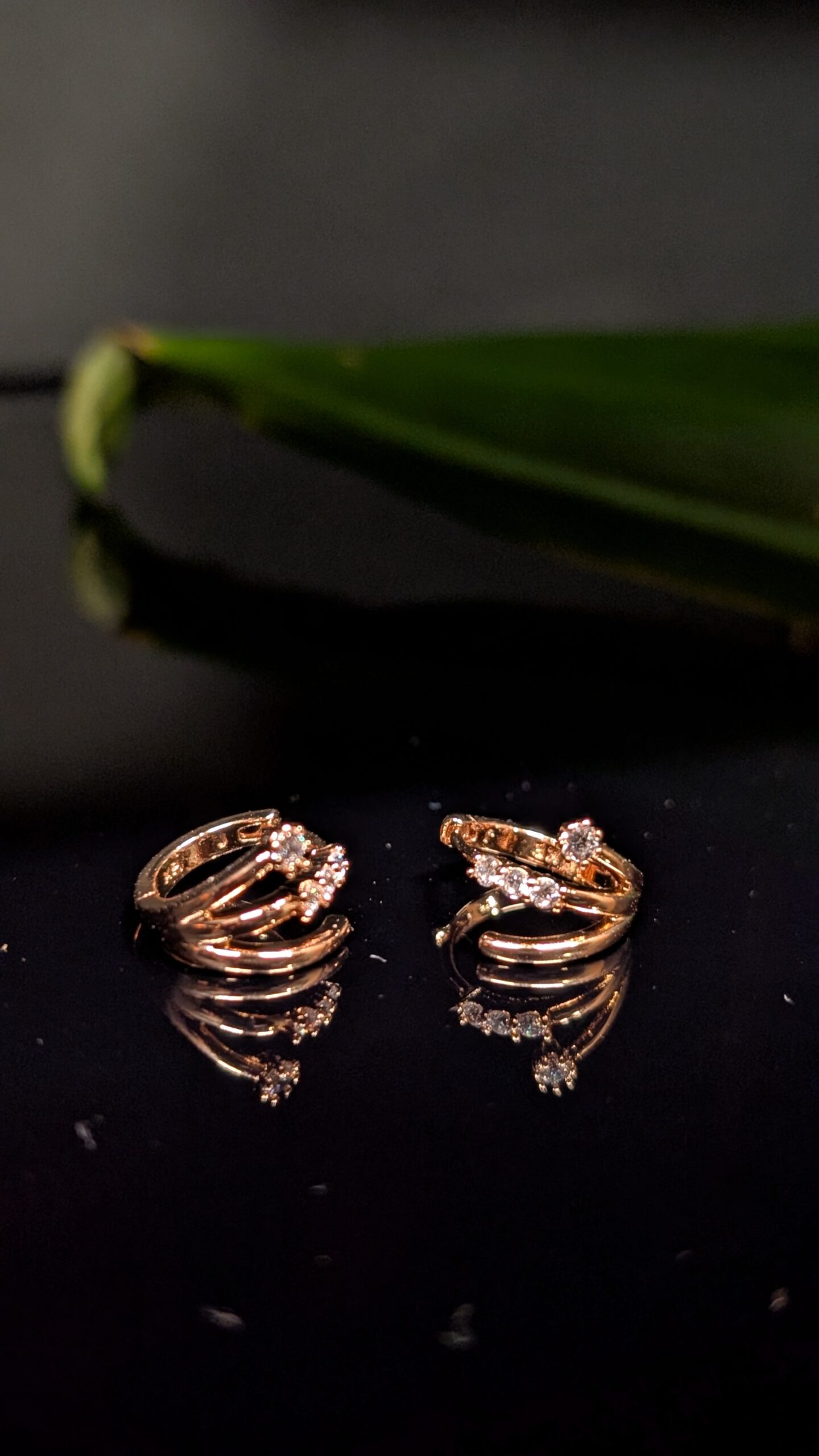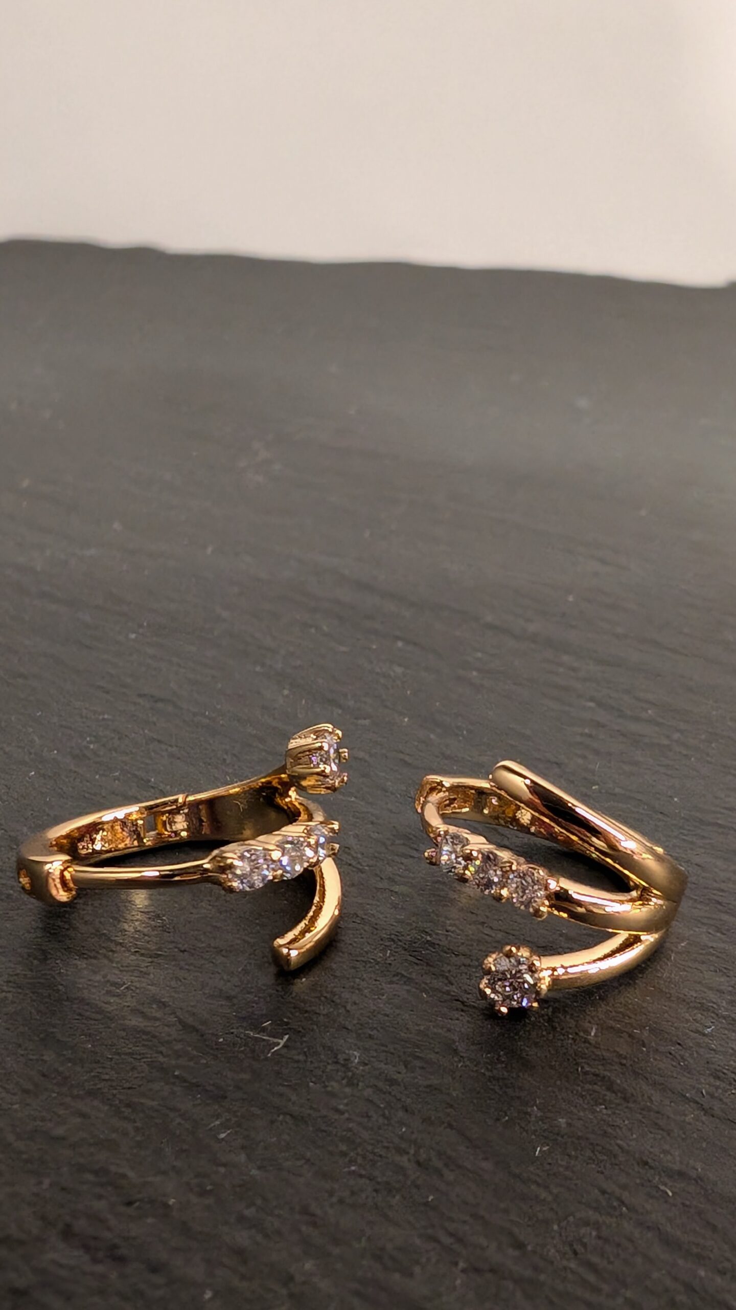 Auksinės spalvos auskarai su subtiliai išdėstytais žėrinčiais akmenukais. Modernus ir elegantiškas dizainas suteikia išskirtinumo bei puikiai papuoš tiek kasdienį, tiek šventinį įvaizdį.