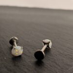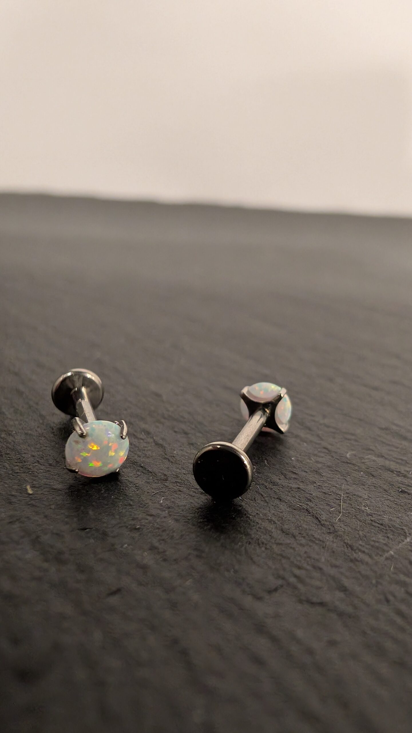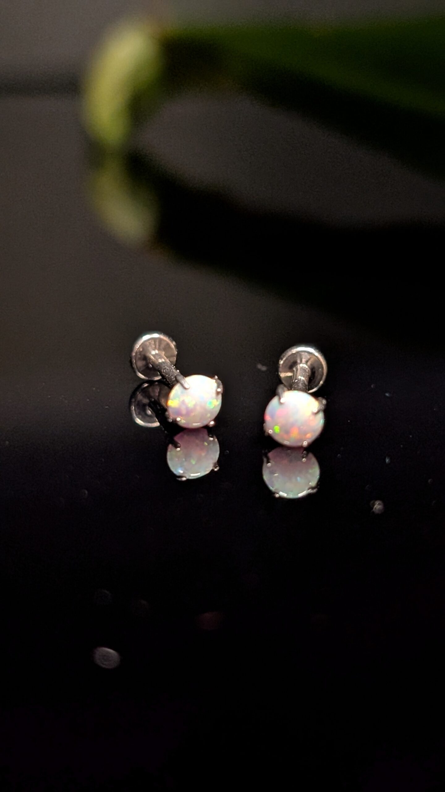 Stilingi auskarai su opalo efekto akmenėliu, subtiliai žėrinčiu įvairiomis spalvomis. Minimalistinis dizainas puikiai tinka kasdieniam įvaizdžiui ir suteikia išskirtinio žavesio.