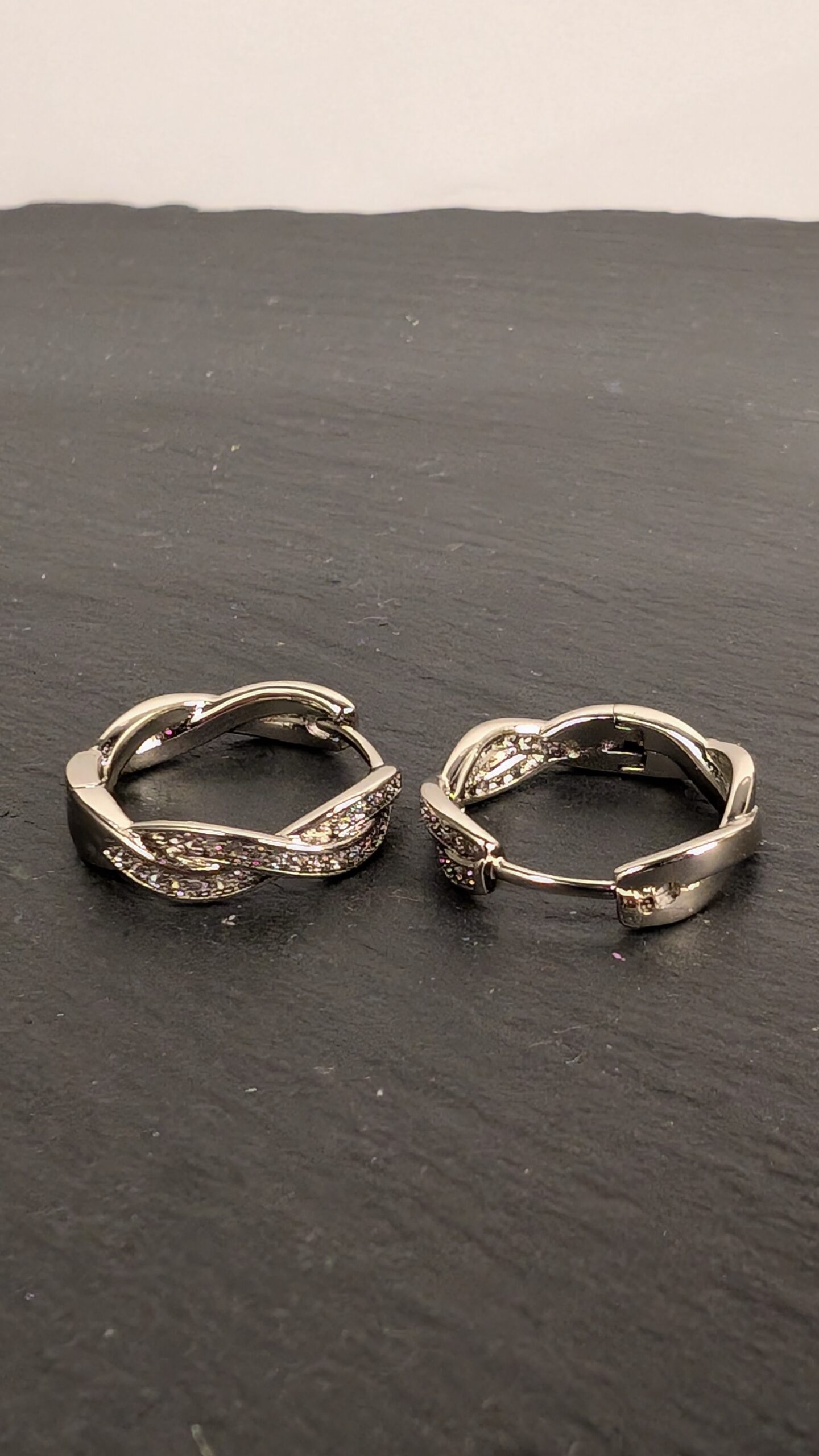 Rafinuoti auskarai su subtiliai persipinančiomis linijomis, dekoruotomis žvilgančiomis kristalo akutėmis. Švelnus pynimo motyvas simbolizuoja harmoniją ir eleganciją, todėl tai puikus pasirinkimas tiek kasdieniam įvaizdžiui, tiek ypatingoms progoms.