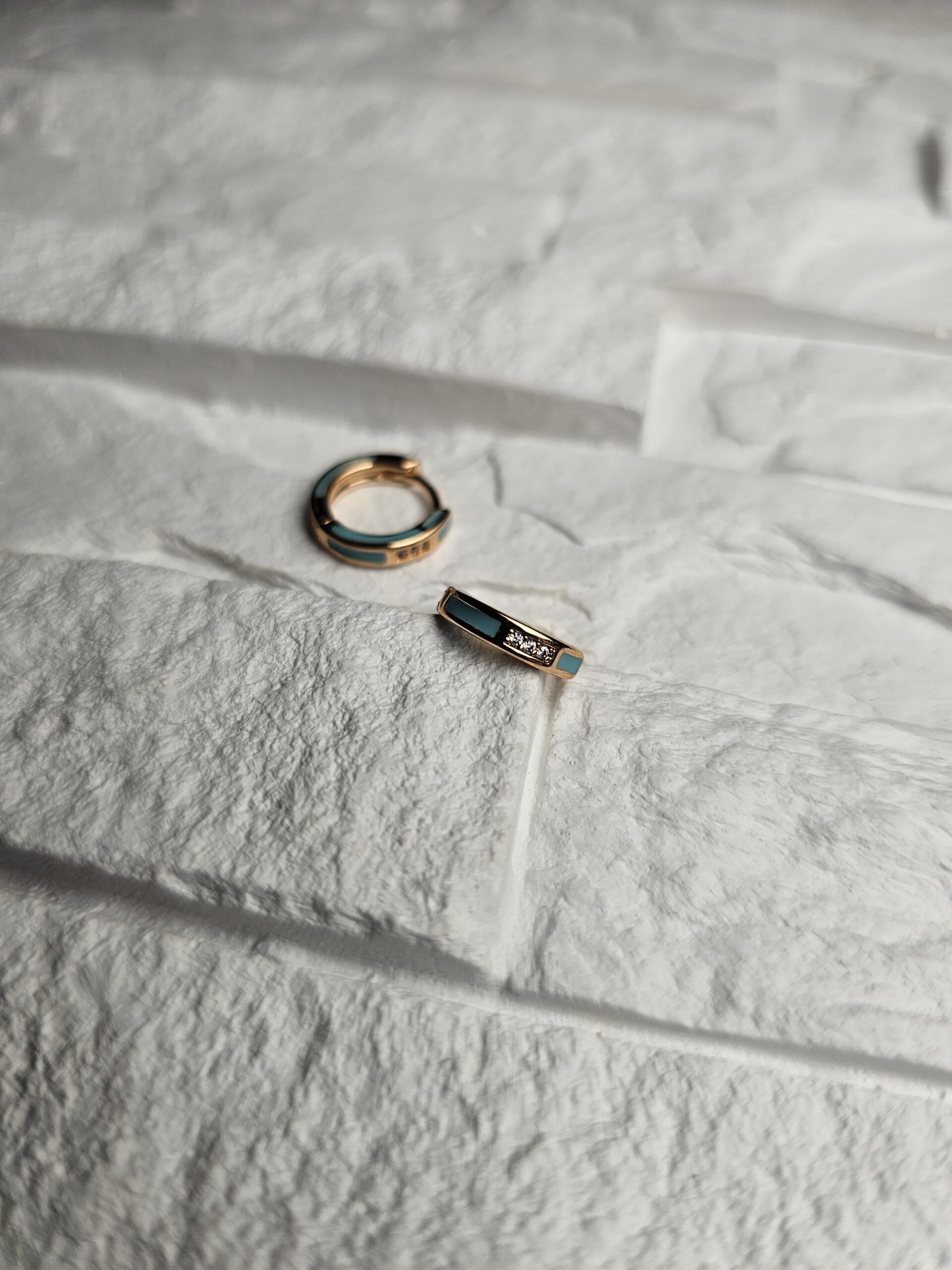 Modernūs auskarai su subtilia mėlyna linija, simbolizuojantys ramybę ir eleganciją. Auksinis pagrindas suteikia šilumos, o minimalistinis dizainas puikiai tinka kasdienai bei stilingam vakariniam įvaizdžiui.