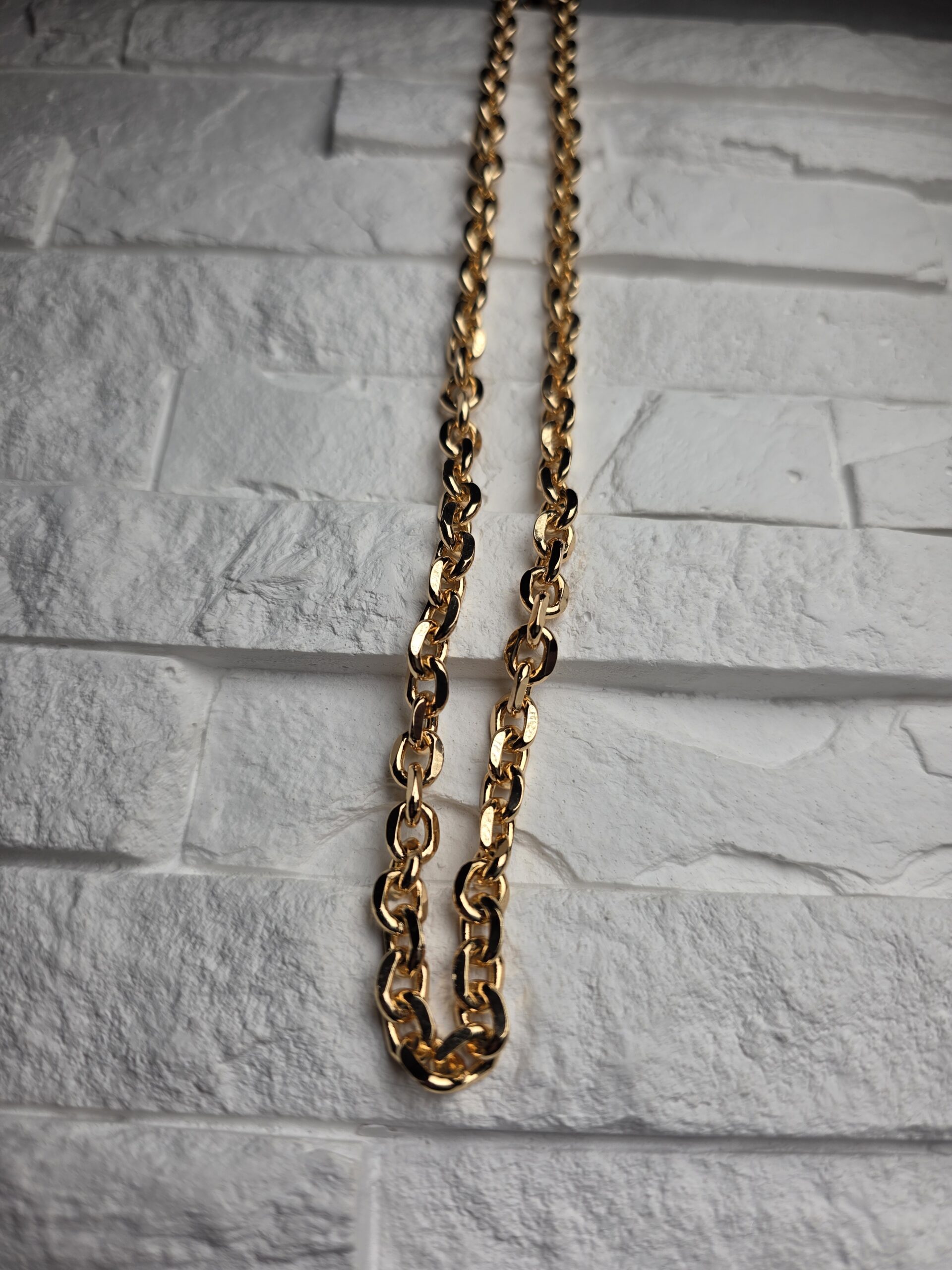Ryškesnė auksinės spalvos grandinėlė iš apvalių, stambesnių narelių. Vizualiai tvirta, bet neperkrauta. Derinama tiek prie didesnių pakabukų, tiek nešiojant vieną. Akivaizdi išraiška ir aiškus akcentas.