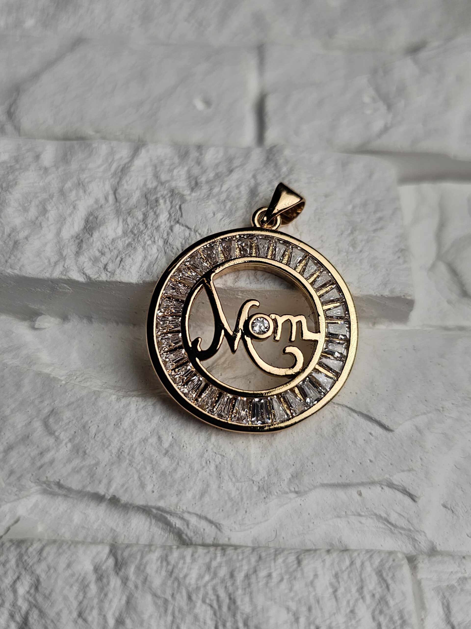 Auksinės spalvos pakabukas su užrašu „Mom“ – švelni ir prasminga dovana brangiausiam žmogui. Cirkonio akmenukai subtiliai žaižaruoja, suteikdami papuošalui elegancijos ir šilumos. Tai simbolis meilės, dėkingumo ir stipraus ryšio su mama.