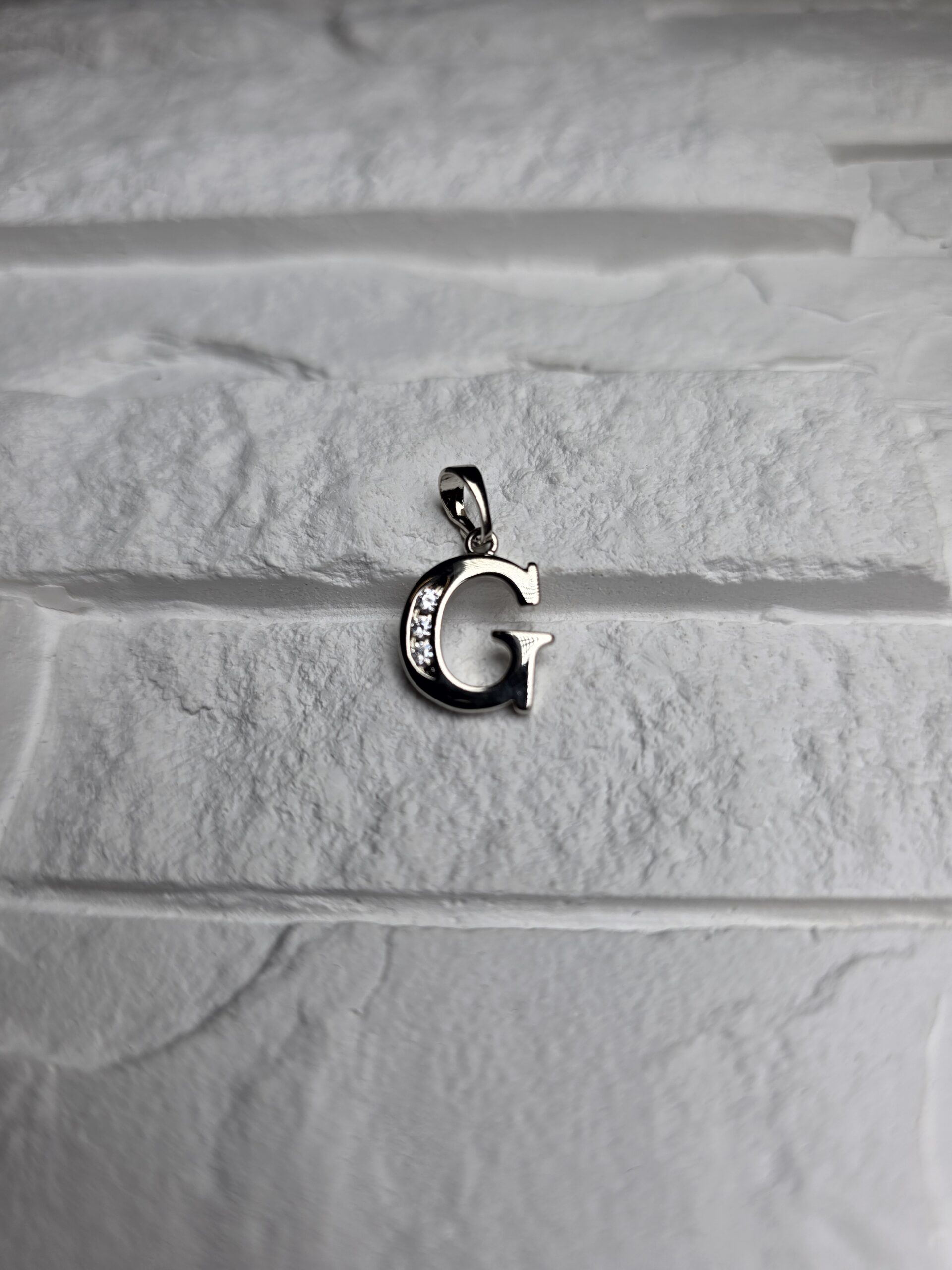 Sidabrinės spalvos raidės formos pakabukas su cirkonio juostele. Minimalus dizainas išlaiko švarą ir aiškų akcentą, todėl lengvai dera prie įvairių grandinėlių. Tinka kasdieniam nešiojimui ir dovanai.