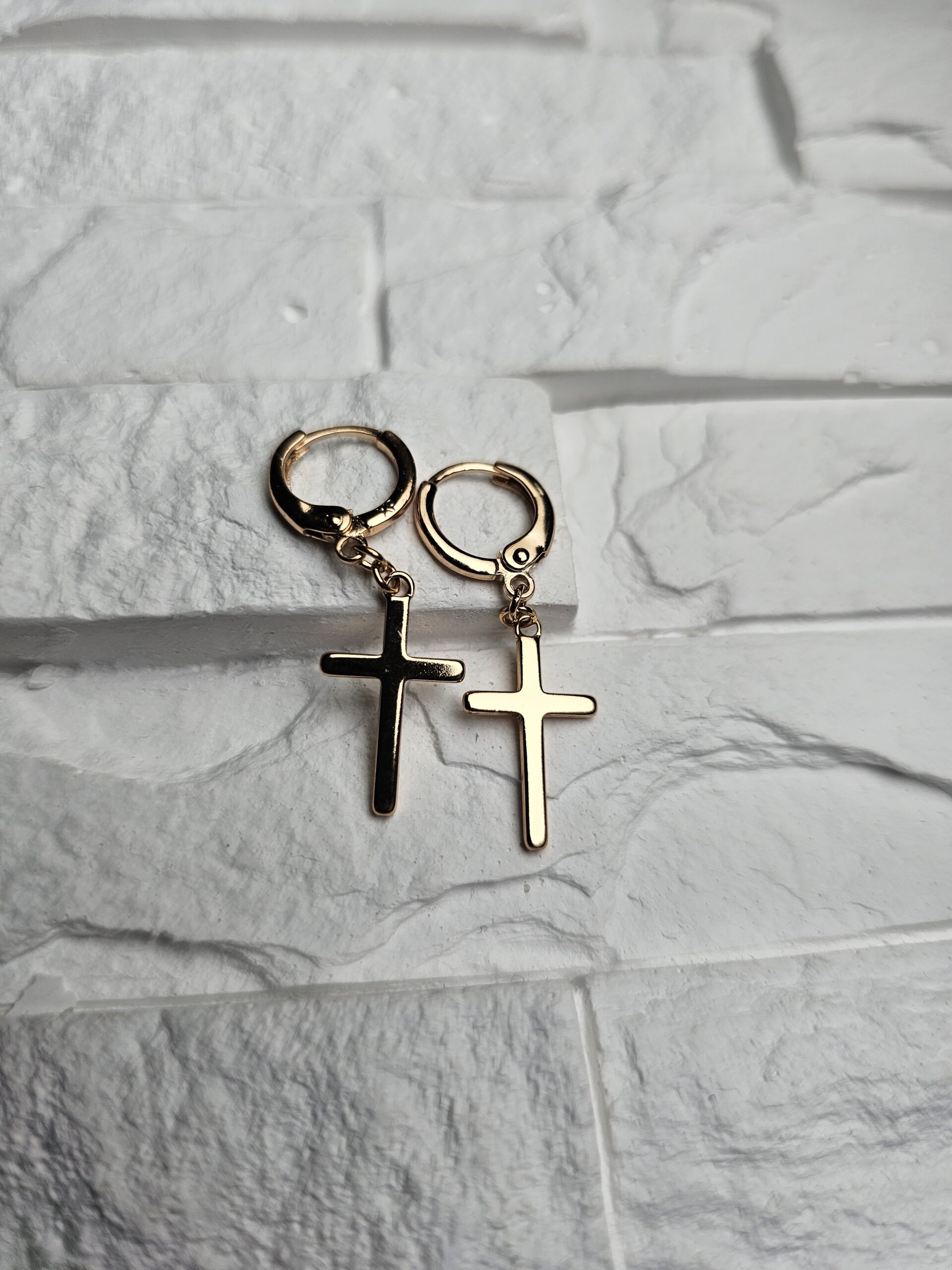 Žymų: auksiniai, auskarai, elegantiški, kabantys, kasdieniai, klasikiniai, kryželis, medicininis metalas, moteriški, simboliniai
