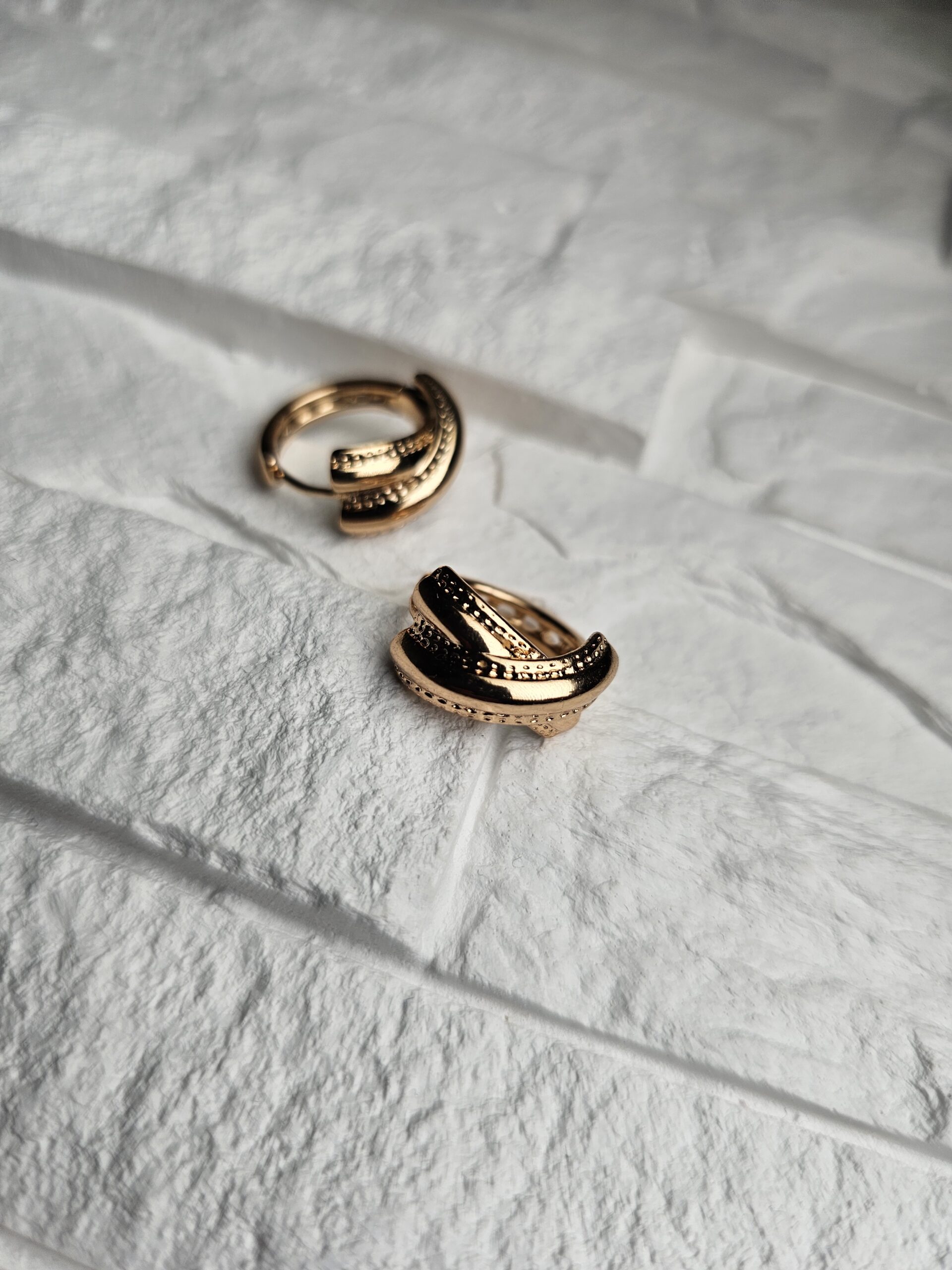 Auksinės spalvos auskarai su subtiliu juodu raštu – stilingas derinys, spinduliuojantis išskirtinumu ir šiluma. Derinant klasikines linijas su moderniu akcentu, šie auskarai puikiai tinka tiek kasdienai, tiek vakariniam įvaizdžiui.