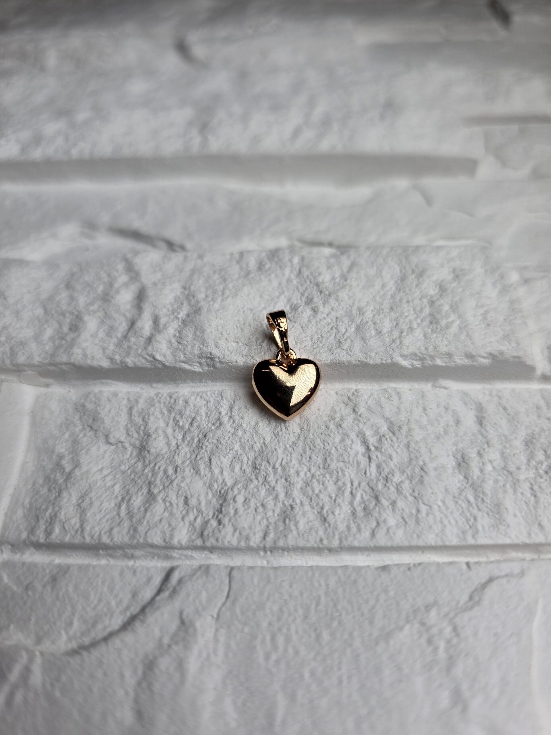 Mažas auksinės spalvos širdelės pakabukas iš medicininio metalo. Lygus paviršius suteikia švarų atspindį. Tinka kasdieniam nešiojimui ir subtiliam aksesuarui prie bet kurios grandinėlės.