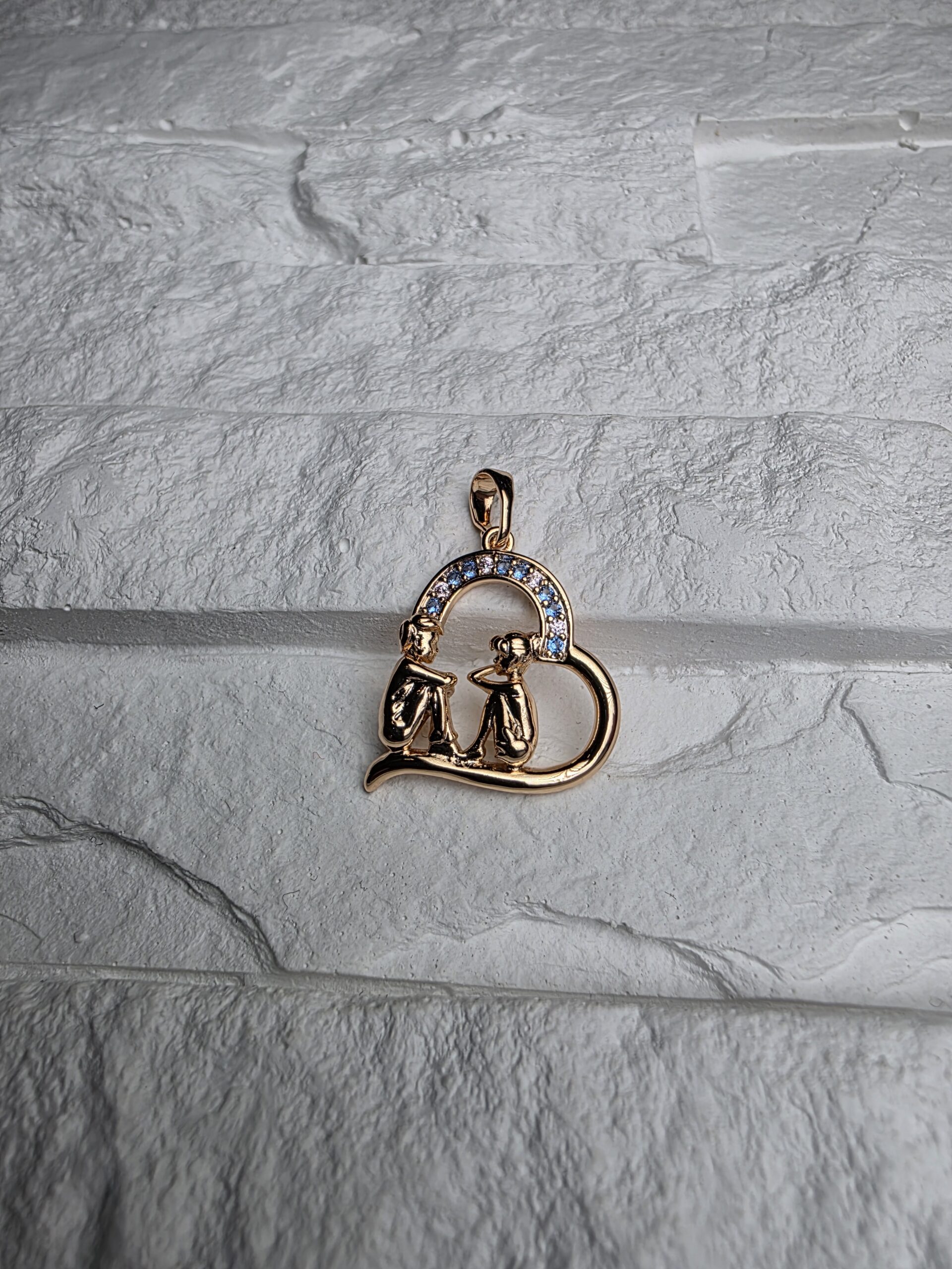 Auksinės spalvos pakabukas iš medicininio metalo su dviem stilizuotomis figūromis širdies formos kontūre. Viršutinėje dalyje įstatyti šviesūs kristalai suteikia ramų spindesį. Simbolis artimiems žmonėms ir kasdieniam nešiojimui.