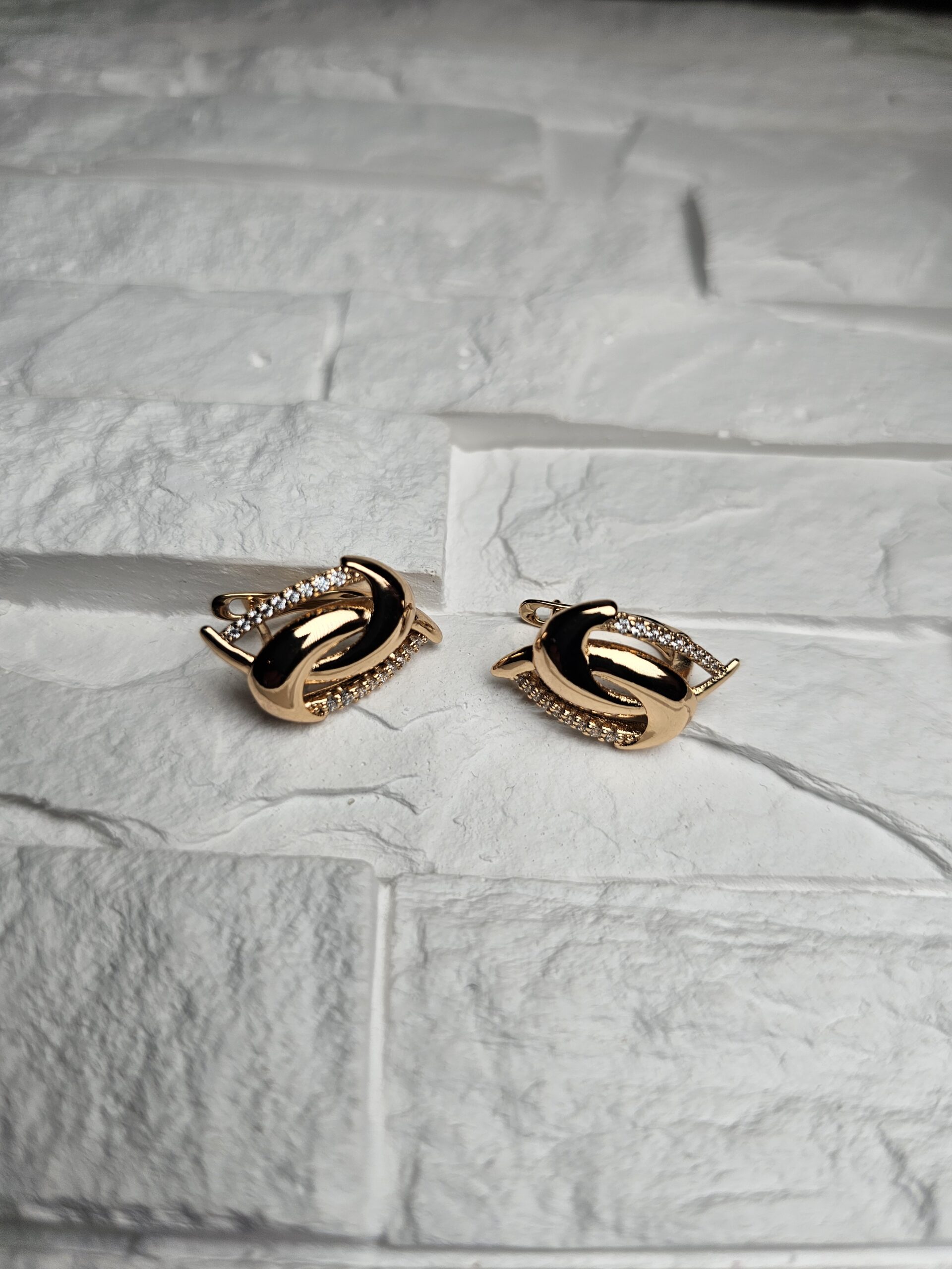 Auksinės spalvos auskarai su elegantišku susipynusiu dizainu ir subtiliu akmenėlių žvilgesiu. Jų išskirtinė forma suteikia prabangos ir išbaigtumo pojūtį, o blizgantis paviršius puikiai atspindi šviesą. Idealus pasirinkimas tiek kasdieniam stiliui, tiek ypatingai progai.