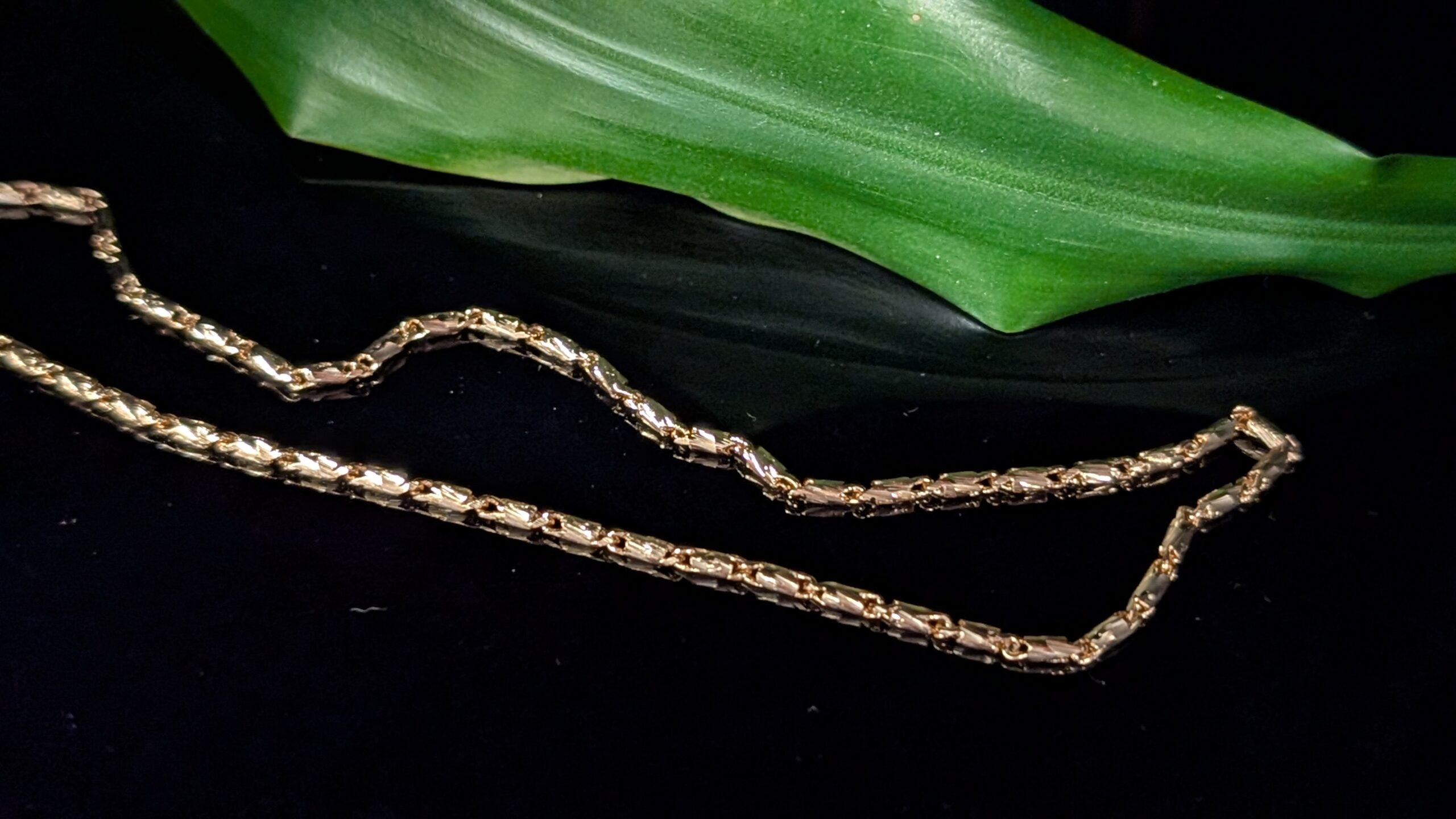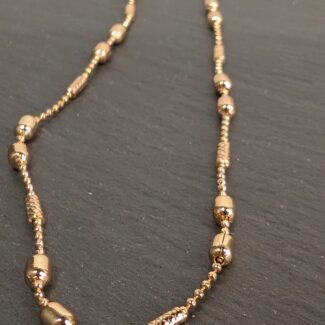 Išraiškinga auksinės spalvos grandinėlė su unikalia šakelių rašto faktūra. Solidus ir stilingas aksesuaras, puikiai tinkantis tiek kasdienai, tiek ypatingoms progoms. Elegantiška forma suteikia subtilaus išskirtinumo ir išryškina individualų stilių.