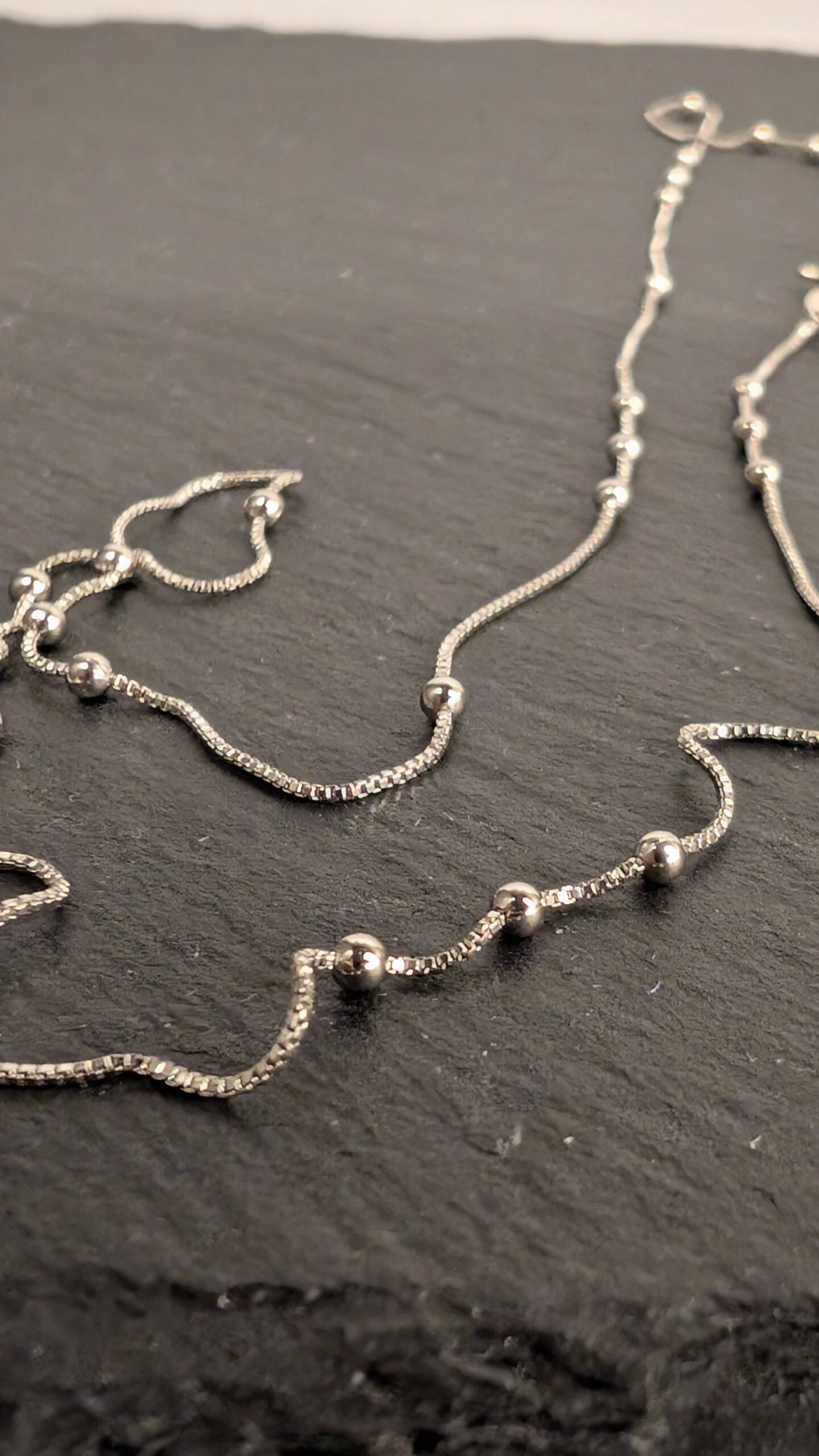 Žymos: kasdienis papuošalas, minimalistinis stilius, moteriškas aksesuaras, sidabrinė grandinėlė, taškinis dizainas