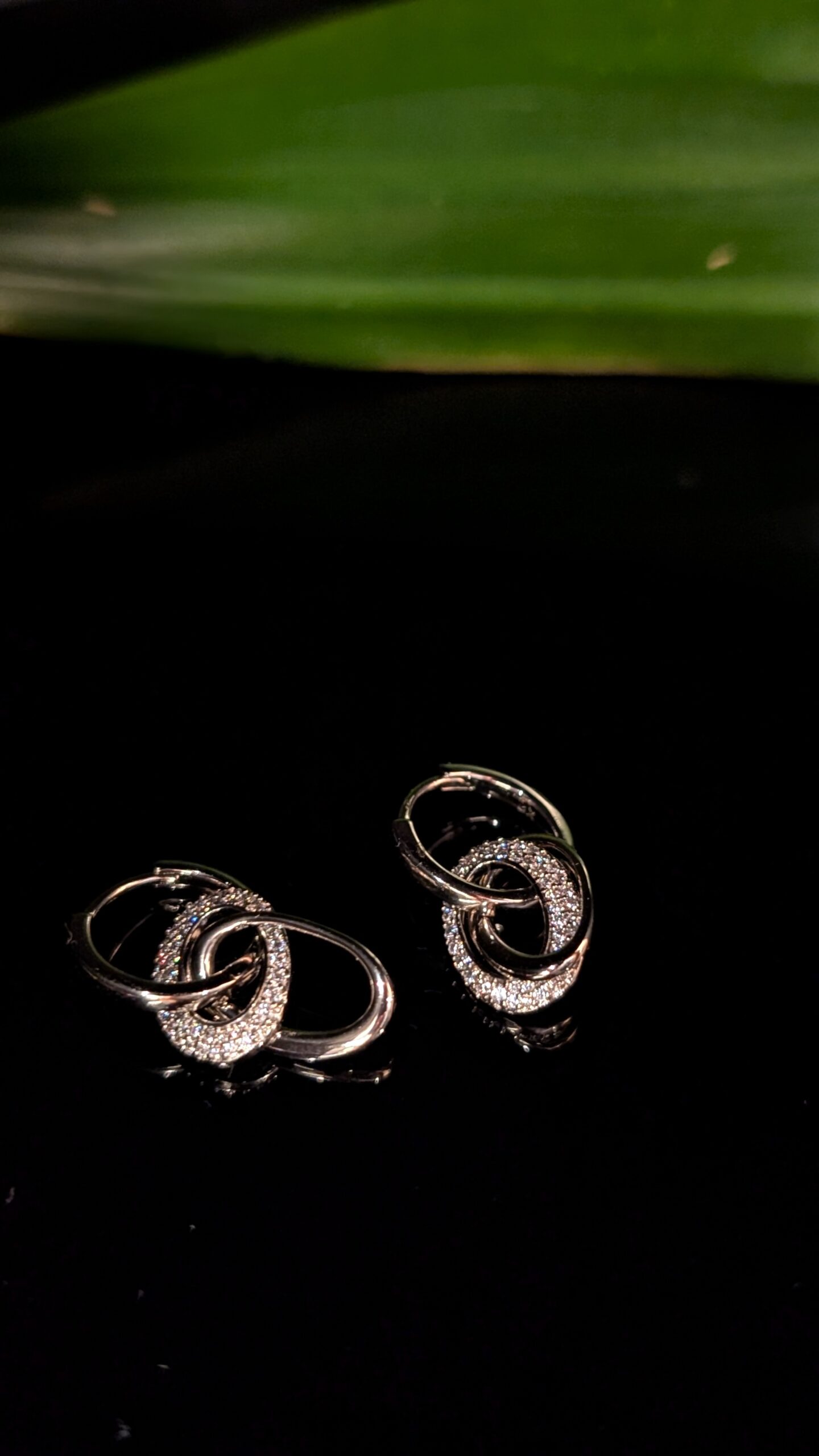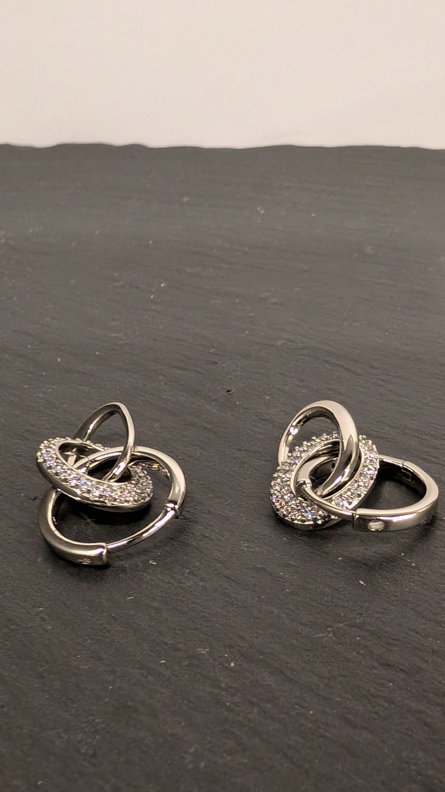 Išskirtinio dizaino auskarai, dekoruoti spindinčiais cirkonių kristalais. Susipynusių žiedų forma simbolizuoja harmoniją ir ryšį, todėl šie auskarai puikiai tiks tiek kasdienai, tiek ypatingoms progoms. Elegantiškas ir šiuolaikiškas akcentas, suteiksiantis jūsų įvaizdžiui prabangos spindesio. Galimi net keli nešiojimo būdai – su vienu, dviem ar trimis žiedeliais. Rinkitės pagal nuotaiką!