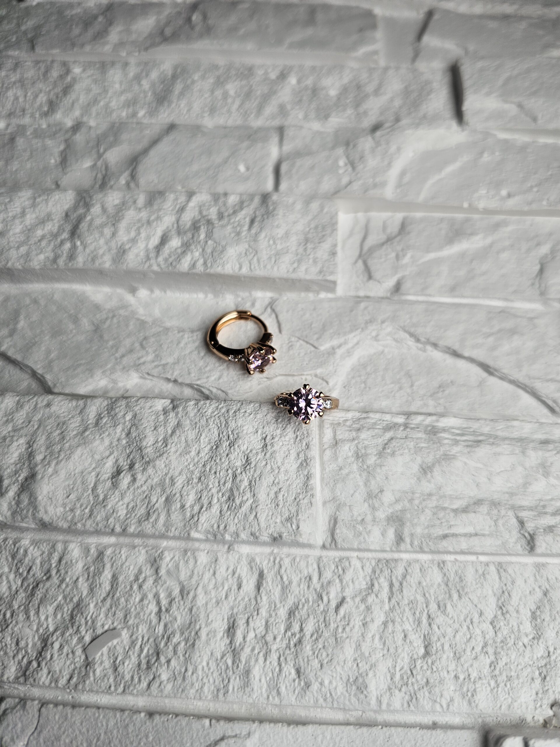 Išskirtinio žavesio auskarai su švelniai violetiniais akmenimis, kurie subtiliai spindi ir pabrėžia moteriškumą. Auksinis pagrindas suteikia prabangos ir šilumos pojūtį, o elegantiška forma idealiai tinka tiek kasdienai, tiek ypatingoms progoms.