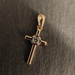 Klasikinio dizaino kryžiaus formos pakabukas iš aukso su įmontuotu spindinčiu akmeniu centre. Subtilus ir elegantiškas simbolis, perteikiantis tikėjimą, stiprybę ir amžiną šviesą. Puikiai dera tiek prie kasdienės grandinėlės, tiek prie ypatingoms progoms skirto įvaizdžio.