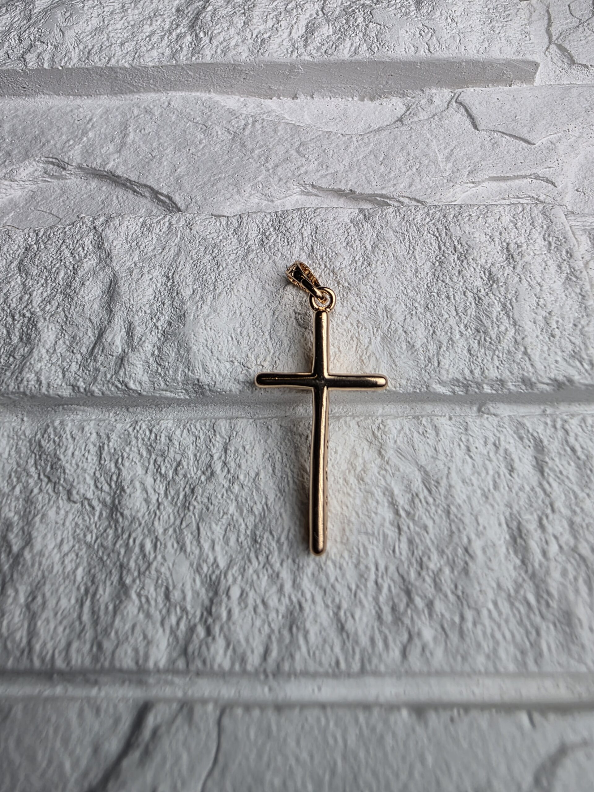 Tiesios formos, minimalistinis kryžiaus pakabukas iš medicininio metalo. Auksinė spalva suteikia šilto subtilumo, o glotnus paviršius tinka tiek kasdienai, tiek dovanai.