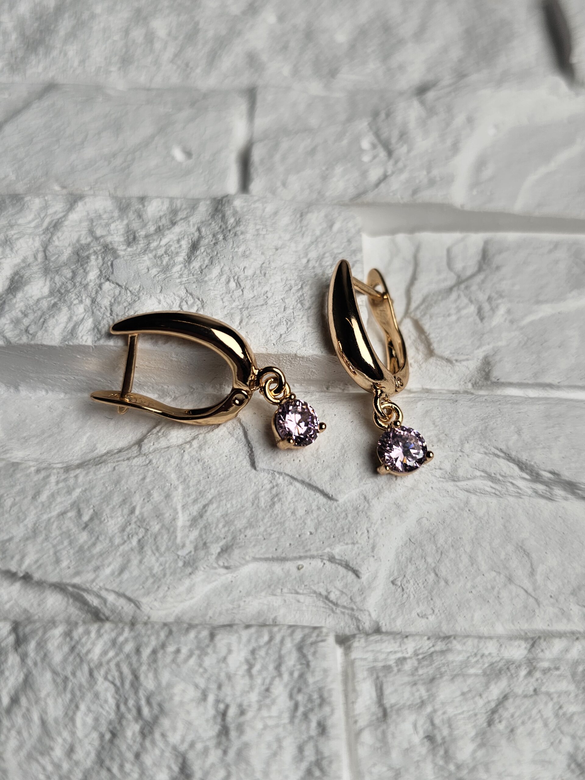 Subtilūs auksinės spalvos auskarai su švelniai rožiniais kristalais, dailiai krentančiais ir žėrinčiais kiekviename judesyje. Derinys tarp šilto aukso ir rožinio akmens suteikia romantikos bei švelnumo pojūtį – puikiai tinka tiek kasdieniam dėvėjimui, tiek ypatingoms progoms.