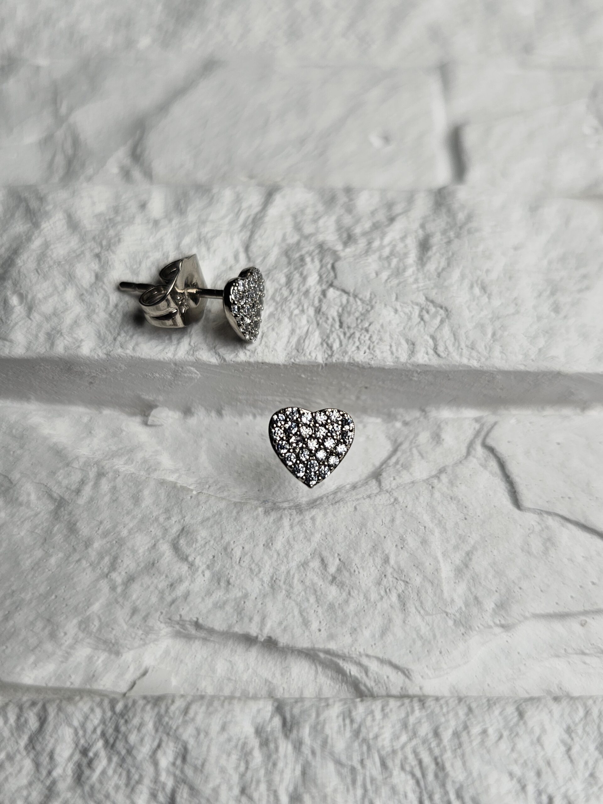 Spindintys sidabrinės spalvos auskarai širdelės formos – subtili meilės ir šviesos išraiška. Žvilgantys akmenukai suteikia jiems išskirtinio spindesio, o minimalistinis dizainas puikiai tinka tiek kasdienai, tiek ypatingoms progoms.