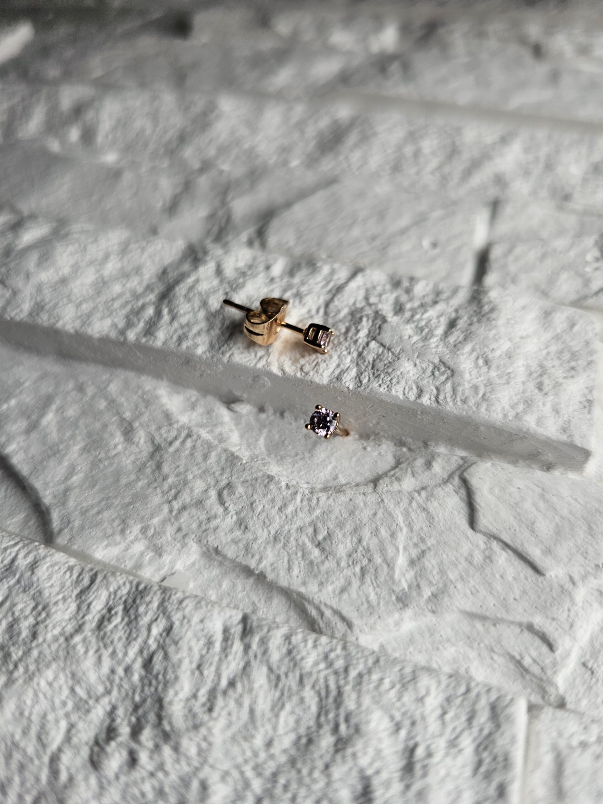 Mini stud auskarai su švelniai violetiniu akmenuku. Nedidelis dydis suteikia subtilų akcentą, tinkantį kasdienai. Lengva derinti su kitais papuošalais.